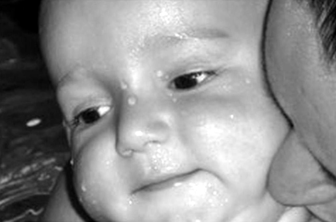 Stále jen polehával, plakal a koukal „nikam“. Po několika dnech tohoto apatického chování začal večer zničehonic obloukovitě zvracet a to několikrát za sebou…dala jsem ho do postýlky, teplotu měl 37,3 °C, za hodinu a půl měl již 39,2 °C. Hodně plakal a stále zvracel. Odvezla ho RZ a týden jsme byli v nemocnici. Diagnóza žádná, vyšetření žádné, příčina nezjištěna. 6 dní byl zavřený v postýlce nebo se mnou na posteli a jen apaticky a nepřítomně koukal…